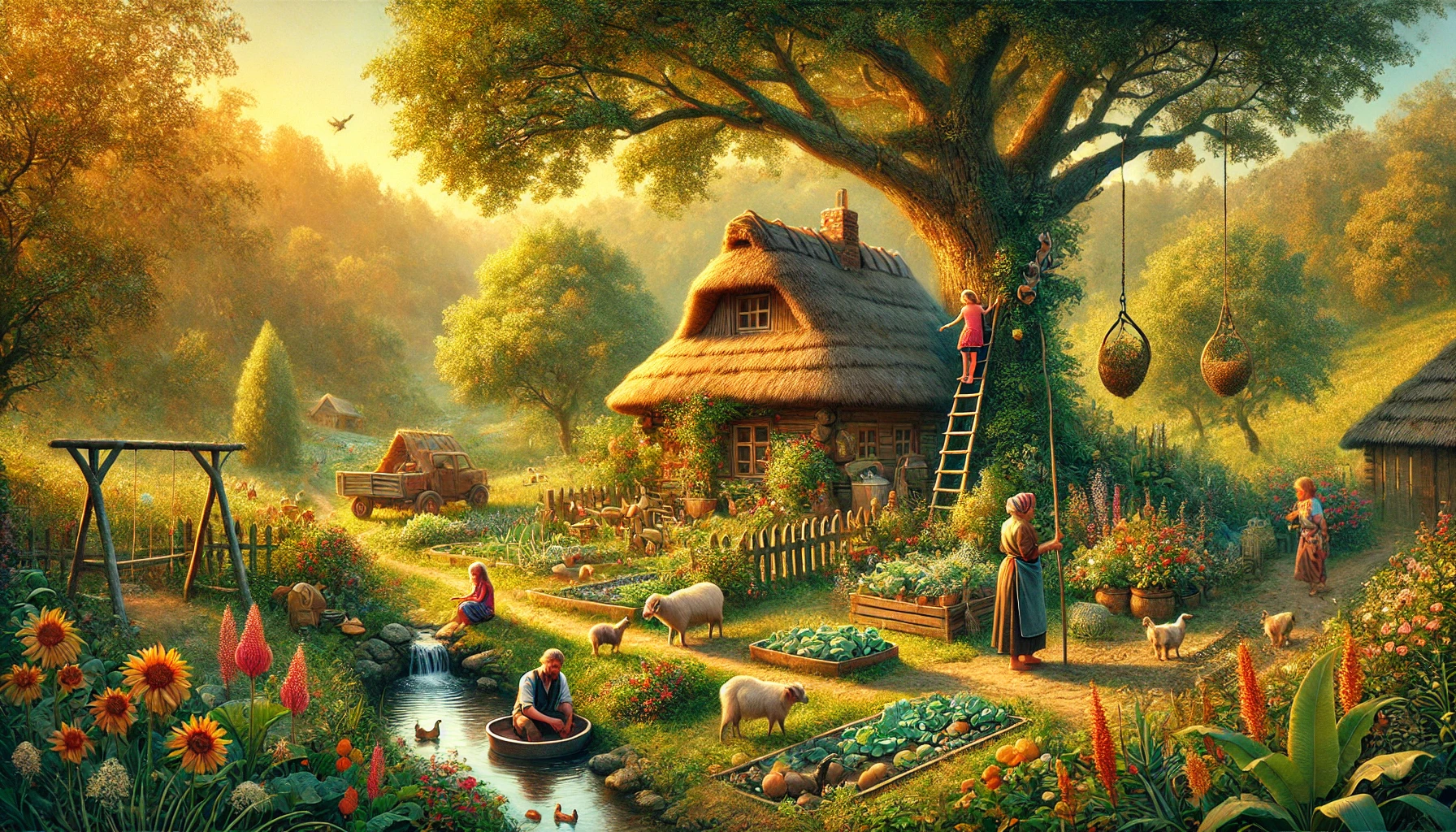 Sadly, this image of a family domain, a homeland, is disappearing almost altogether. Try and think of how many people you know that have this, or are even interested having this. People in todays society don’t understand the value, they prefer something which has predetermined value: money. Most people don’t have any use for a piece of land, aside from selling it to get money in its place. And what will they do with the money. Buy things, in an attempt to buy love. What do they get instead? Loneliness, and a life devoid of meaning. Kids that want to leave the nest as soon as possible, because they know and observe there is no real meaning in that nest. They must go find their own.